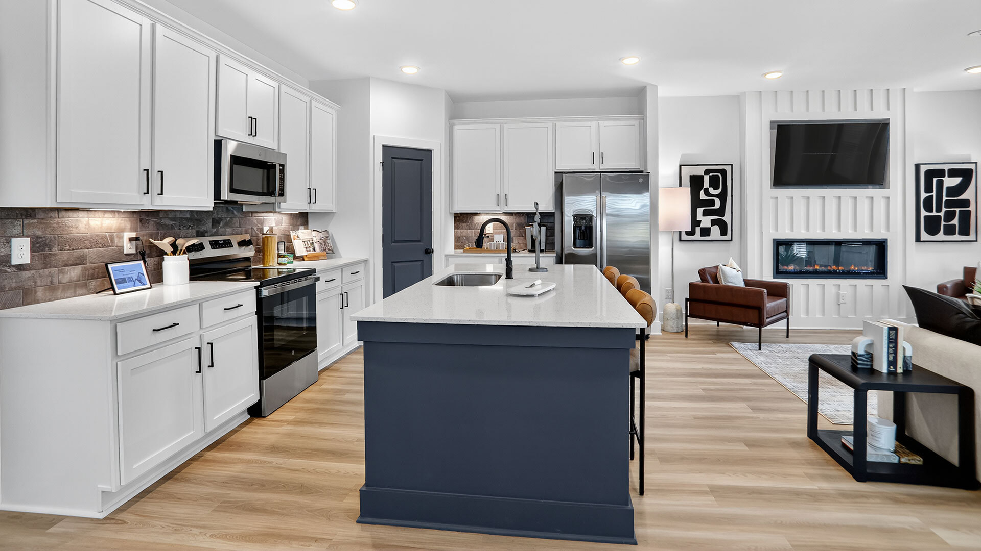 - Linear Fireplace with Surround and 55" TV