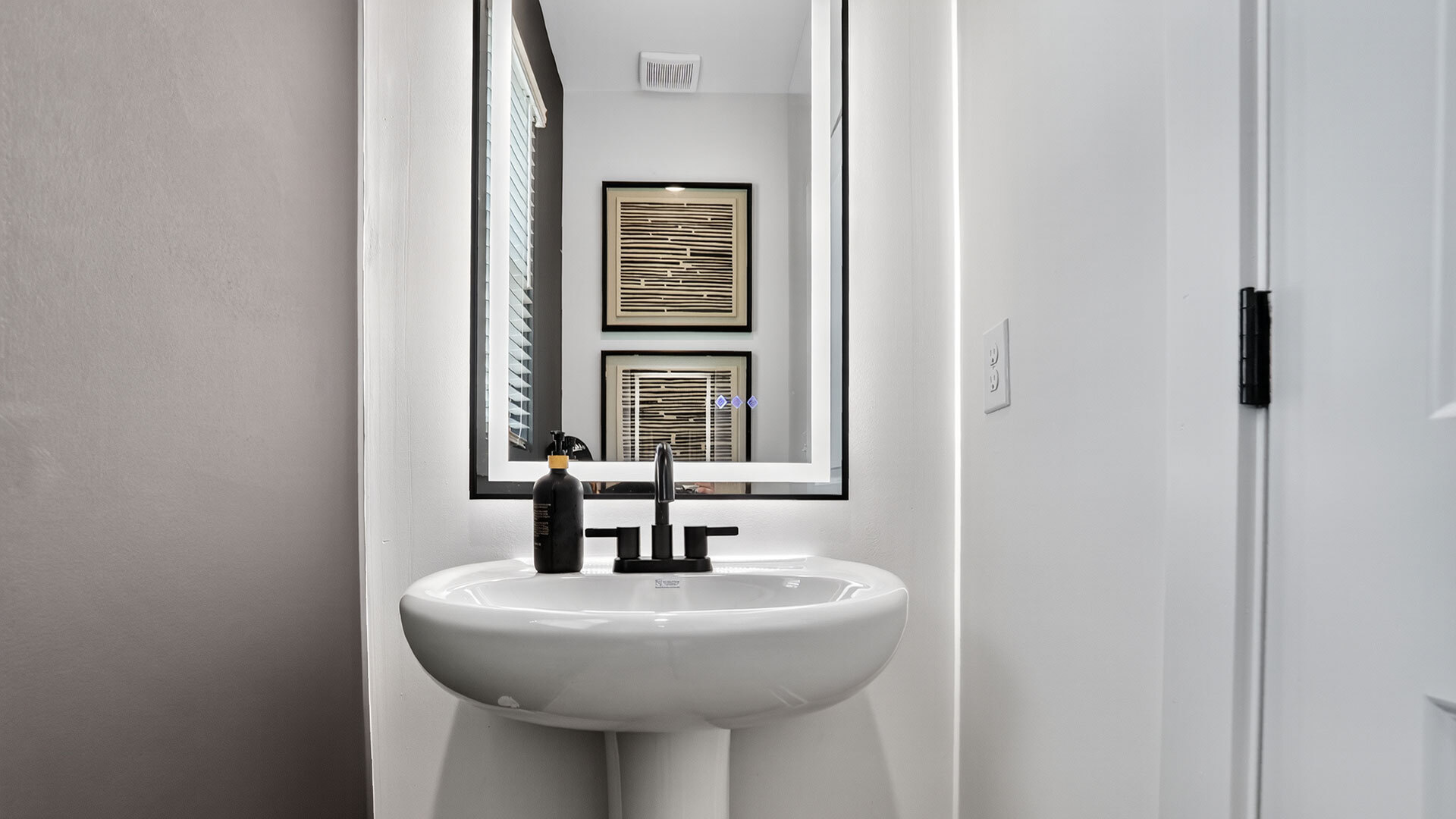 Backlit Mirrors in Primary Bathroom and Powder Room